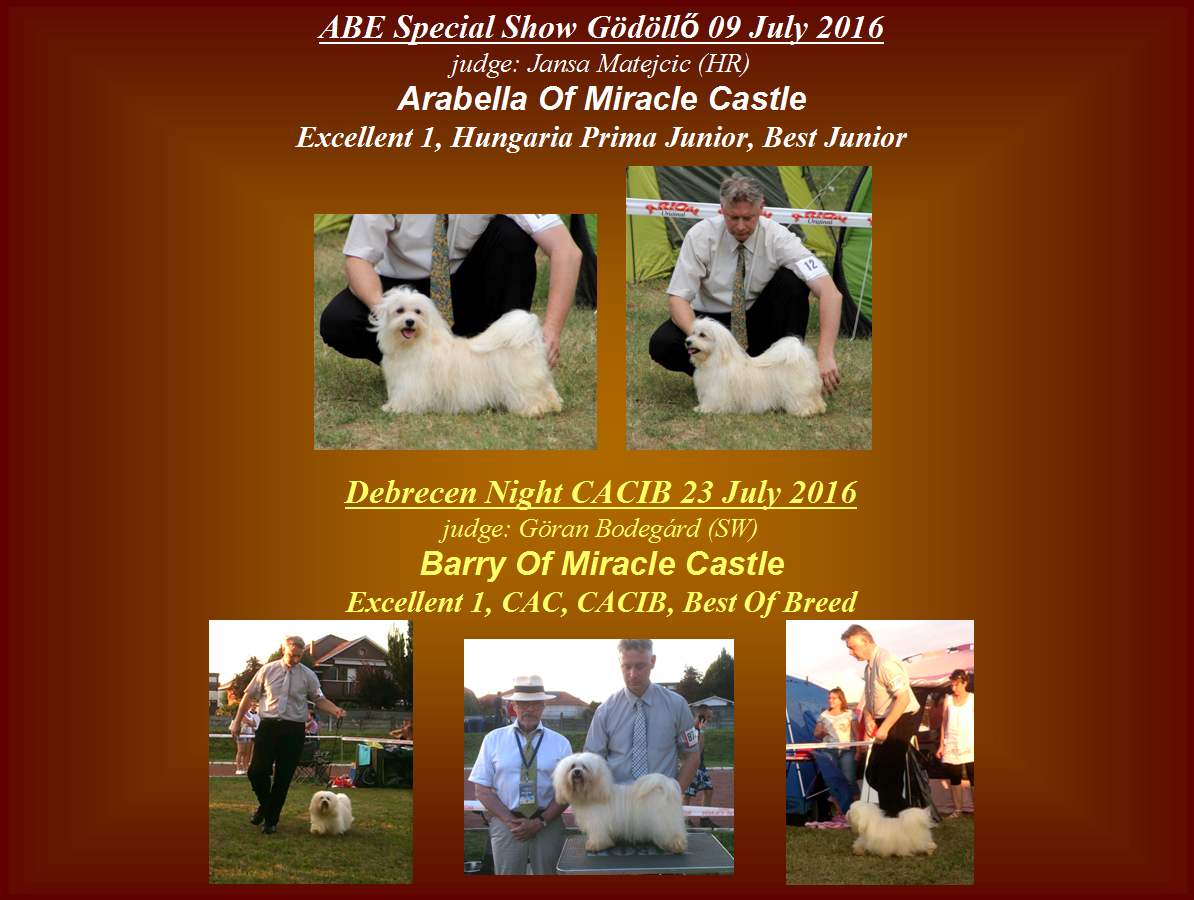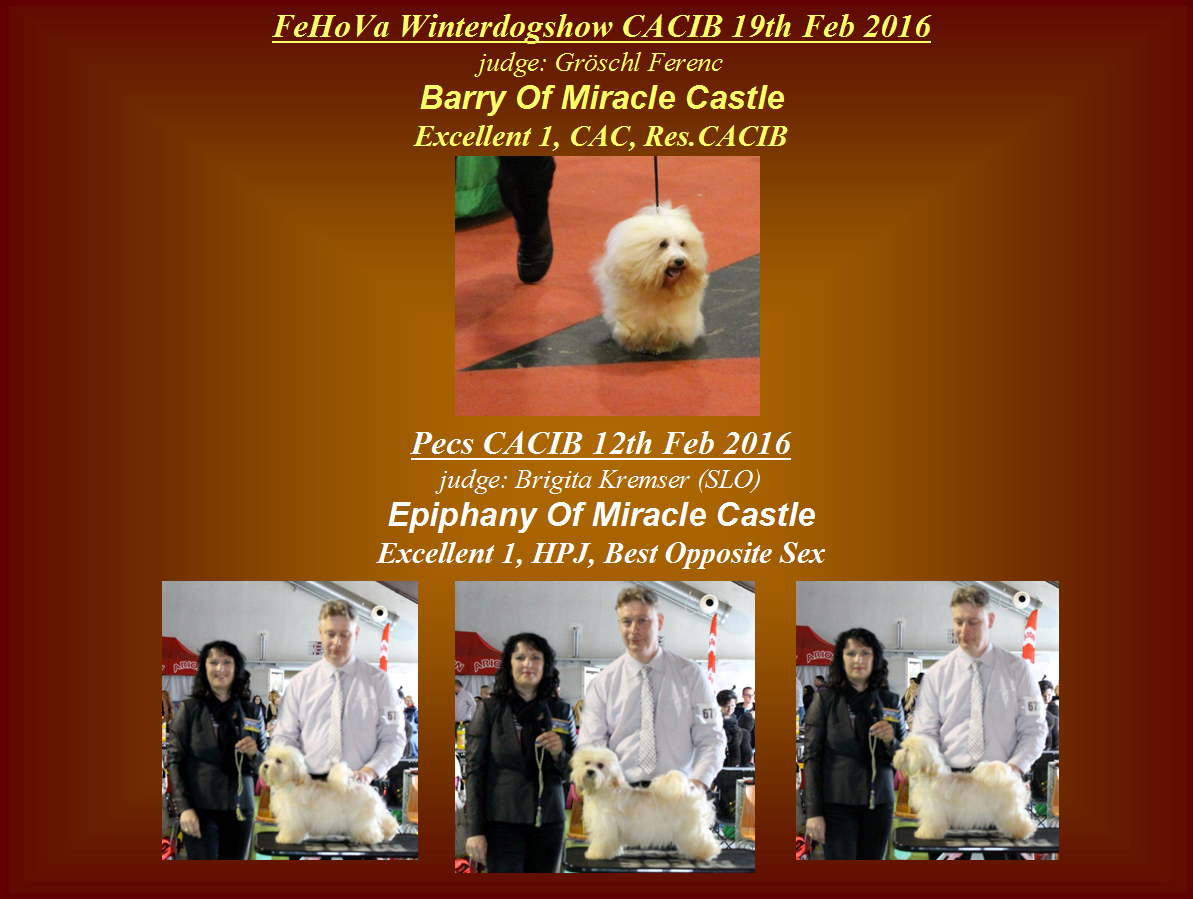 Combined Canine International CACIB Show Bayarin Gaio Cristiano: Green Star Dog, CACIB Dog, Best Of Breed Bayarin Palomba Bianca: Green Star Bitch, CACIB Bitch Siegreich Hattyu: Res Green Star Bitch, Res CACIB Bitch